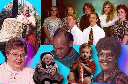 On the drum, is my father. The picture was taken on my parent's 30th anniversary. The picture next to dad, is my sisters and brothers. Left to right (back row): Valerie, Janet, Julie, Diane and me; (front row) Daniel & Jacob. | On the bottom is my mother. :o) Then my neice, Kayla and her dad Bryon (who's married to Janet) and then my son, Dustin and my grandmother, Ivene Rodeback. My interests:
